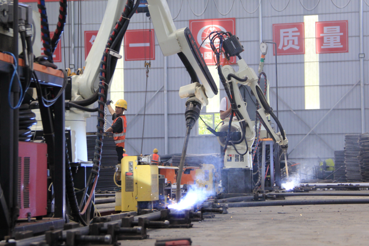 “除了智能机器人焊接系统,我们还采用了全自动钢筋笼焊接工作站、数控锯切套丝生产线、数控平面及立式弯曲中心等先进设备,已经实现了钢筋生产全流程自动化管理。”项目负责人姚胜介绍。