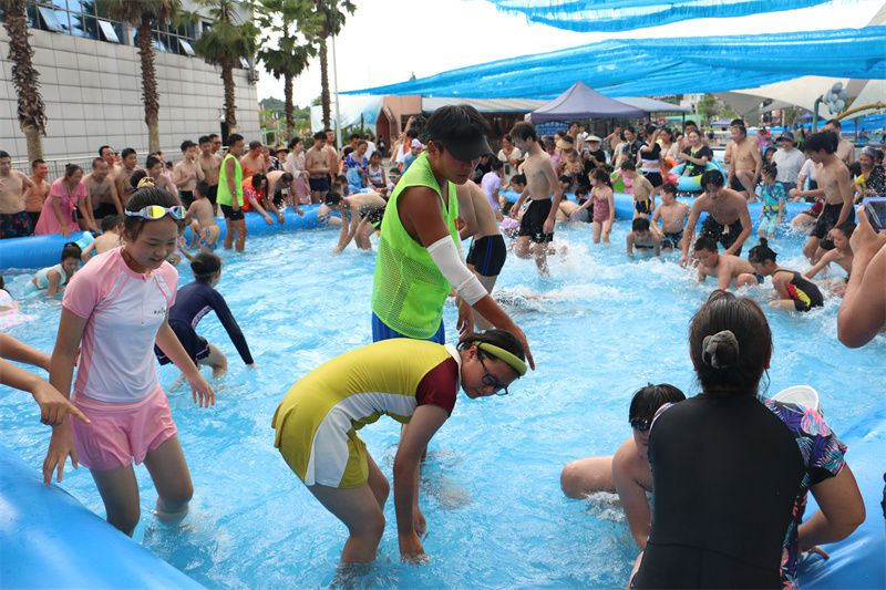 “为了这项活动,每天我们从市场上购买200条鱼供游客娱乐,希望通过这种方式,增加游客的游玩乐趣。”据渠县撒欢乐园负责人李代淼介绍,结合园区内60多项无动力亲子游乐项目,今年园区打造了水上乐园项目,捕鱼活动、水中拔河、猪八戒背媳妇等互动游戏都包含在项目内。