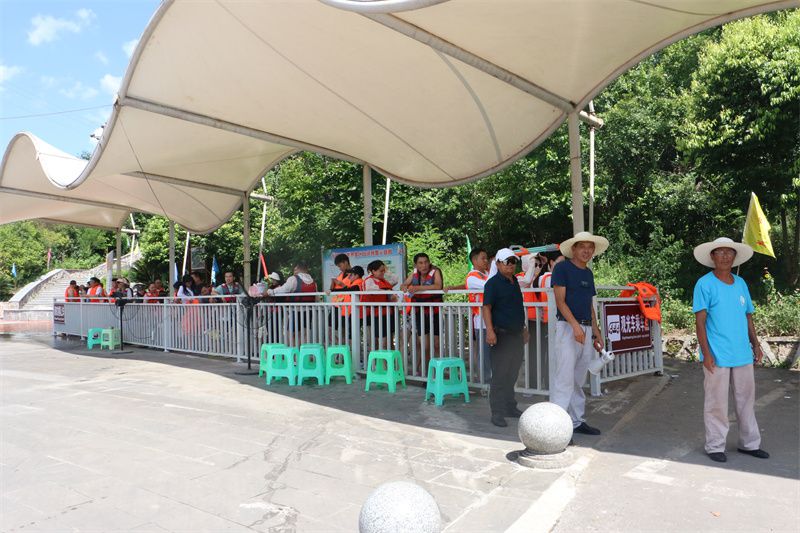 渠县龙嬉谷,游客们正在排队等候漂流。