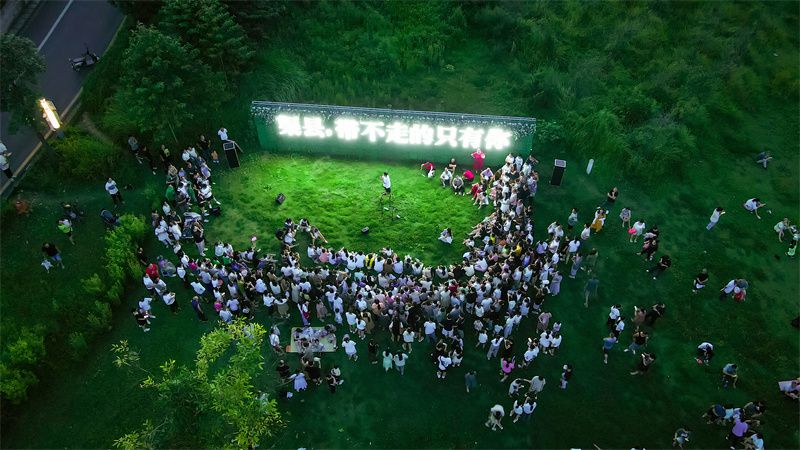 《特别的人》《这就是爱》《后来》……旋律在夏夜里随风飘散,吸引了许多热爱音乐的市民聚在这里。在没有拘束的草坪上,歌手和现场观众们围成一圈,随着音乐舞动。
