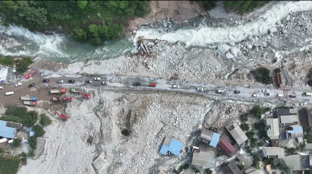 8月3日凌晨,康定市姑咱镇日地村突发山洪泥石流灾害,大量巨石泥沙涌上318国道,造成道路双向中断。灾害发生后,四川省、甘孜州交通运输系统迅速启动应急预案,对道路抢通保通工作进行安排部署,调集多方力量昼夜奋战,通过“两翼作业、绕避堵点、全力推进”的方式开展道路抢修,在四天内接连打通“让地面搜救力量能挺进重灾区”的“生命通道”,让“大型救援设备能顺利运达救援现场”的“救援通道”,“让普通车辆能够安全畅行”的“应急通道”。