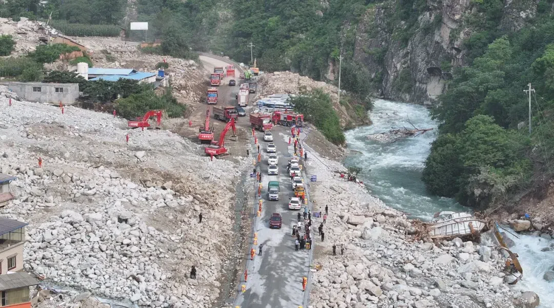 8月7日上午9时,随着现场交警挥出通行手势,在康定市城区交通管制点等待的车辆有序驶入318国道,途中经姑咱镇日地村向泸定行进。这标志着被康定姑咱“8·03”特大山洪泥石流灾害阻断的318国道康定日地村段恢复通车,此时距离康定姑咱山洪泥石流灾害发生仅不到5日。
