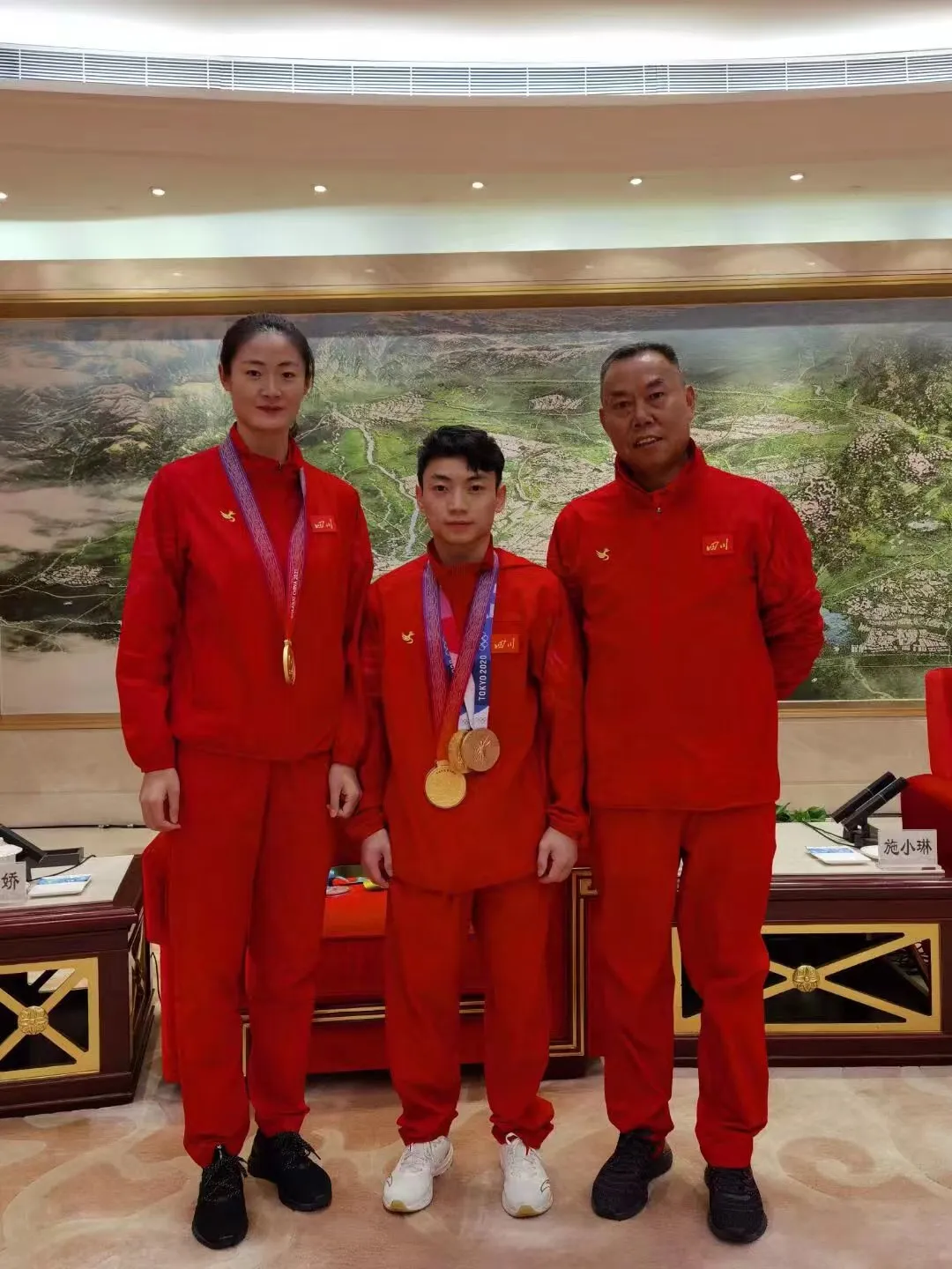 ▲叶娇(左)和邹敬园(中)、张刚富(右)合影 图片来源:运动成都