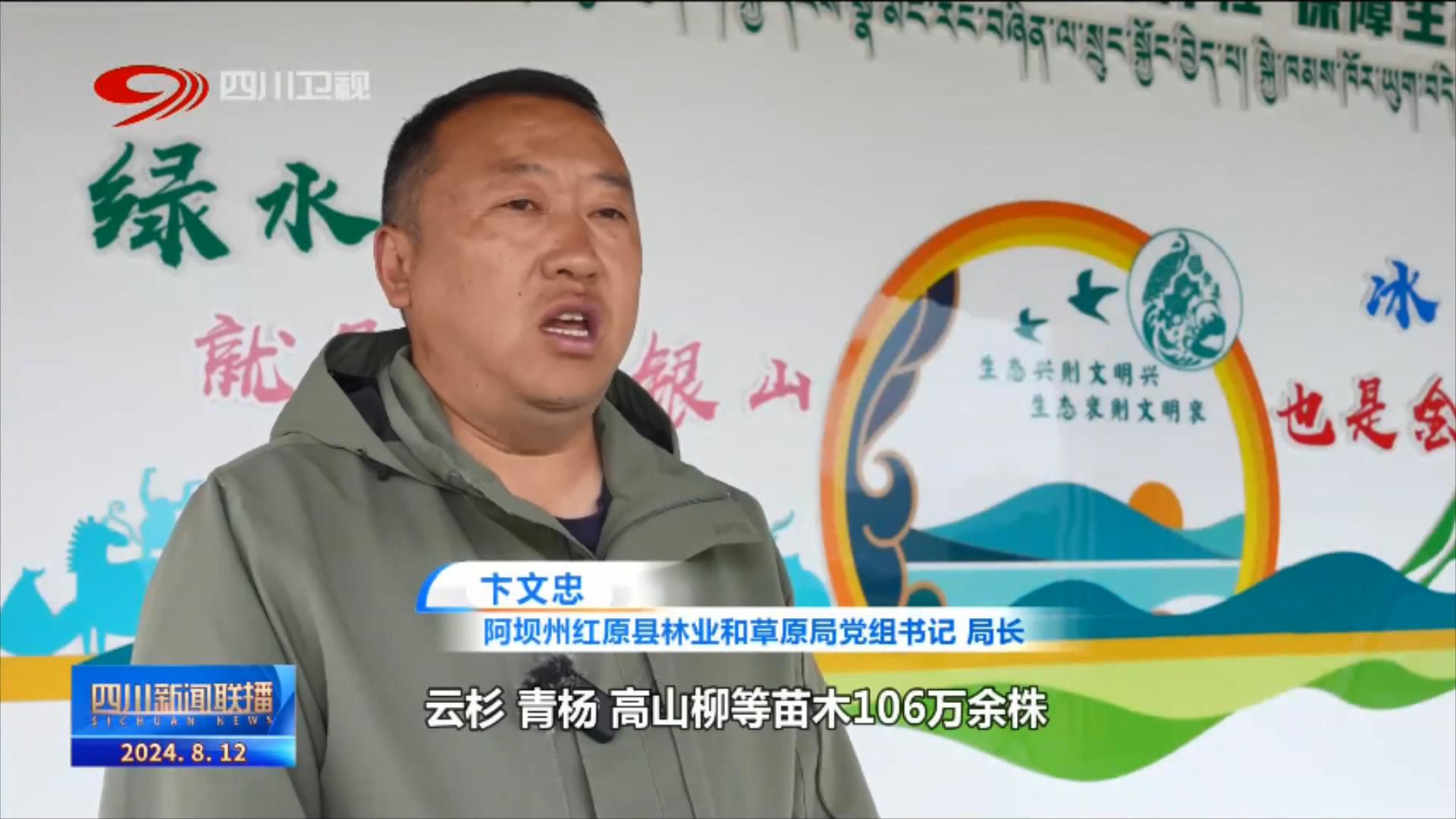阿坝州红原县林业和草原局党组书记、局长 卞文忠:近年来,全县共计栽植云杉、青杨、高山柳等苗木106万余株,并结合草原补播、蓄水保湿等措施,防风固沙、固土能力得到增强,湿地水源涵养功能明显改善。