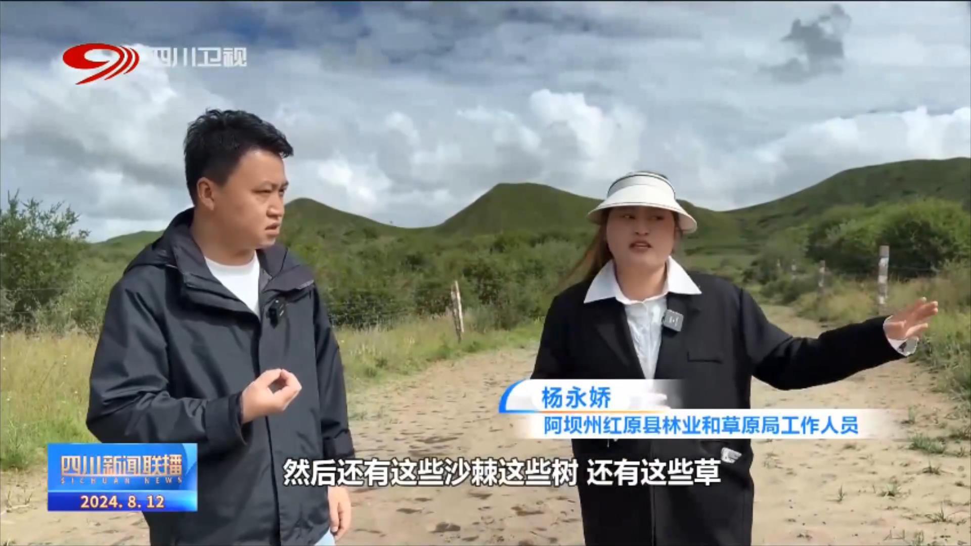 阿坝州红原县林业和草原局工作人员 杨永娇:对,非常明显,你看那里的草,这里的沙地。植被覆盖度,由之前的不足10%,然后到现在的60%及以上。