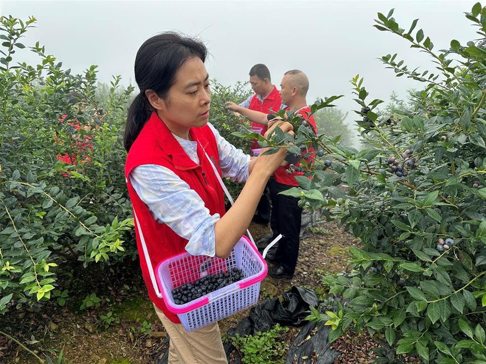 田间地头不断传来介绍蓝莓、解疑答惑的声音,随着山间的云朵,一直飘向远方……