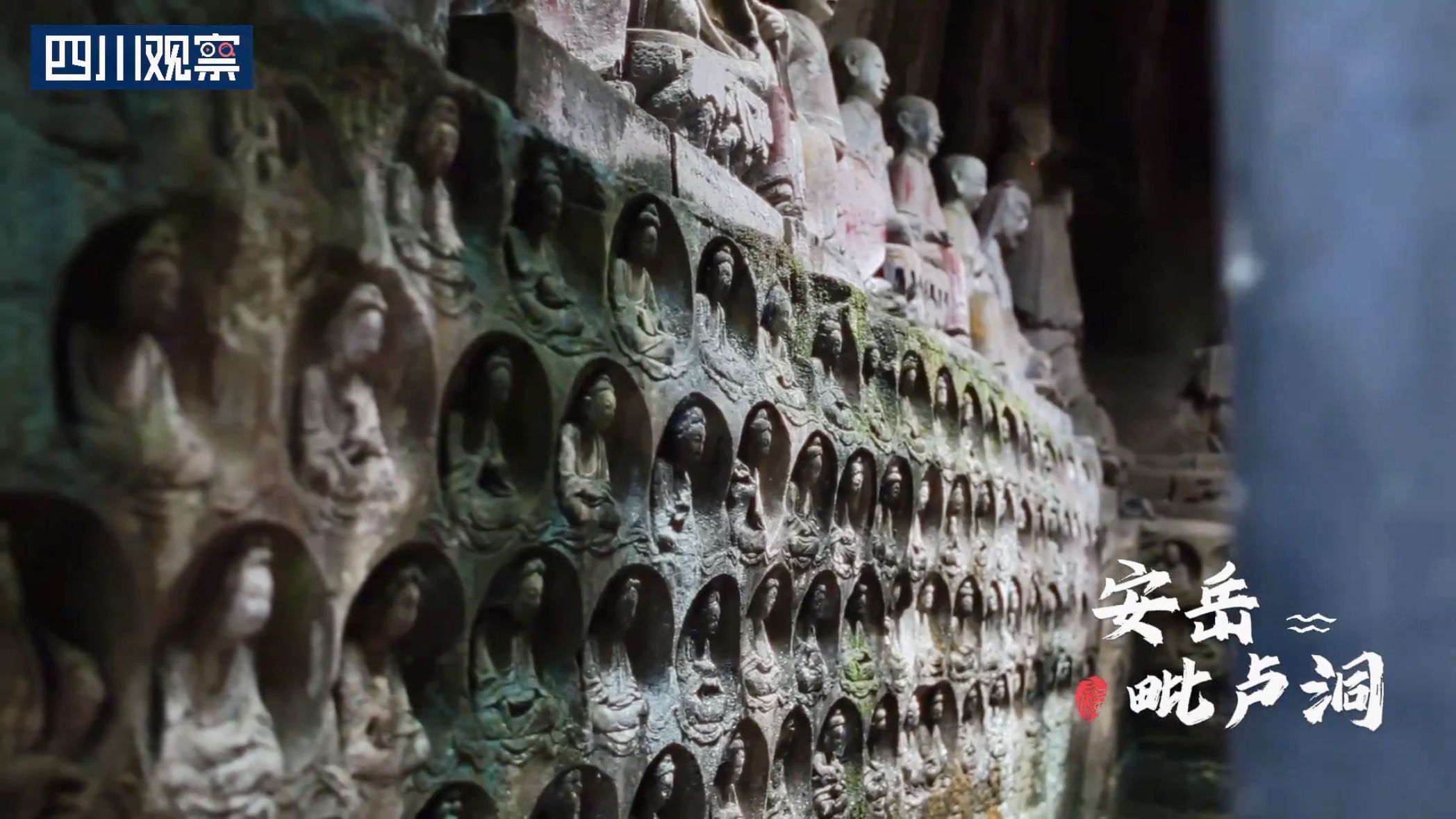 资阳安岳毗卢洞:在《黑神话:悟空》中蜘蛛精姐妹宣传片中出现了多尊石佛站在身后的画面,而这一场景对应的正是安岳毗卢洞。毗卢洞石刻造像是儒、释、道三教合一的石窟造像,题材多样。其倚山取势,因此也称摩崖造像。毗卢洞石刻造像共有造像446尊,刻石题记32处。