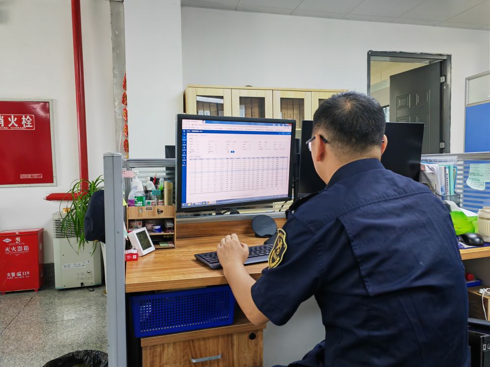 青白江海关工作人员正在查看报关情况。新华社记者李力可 摄