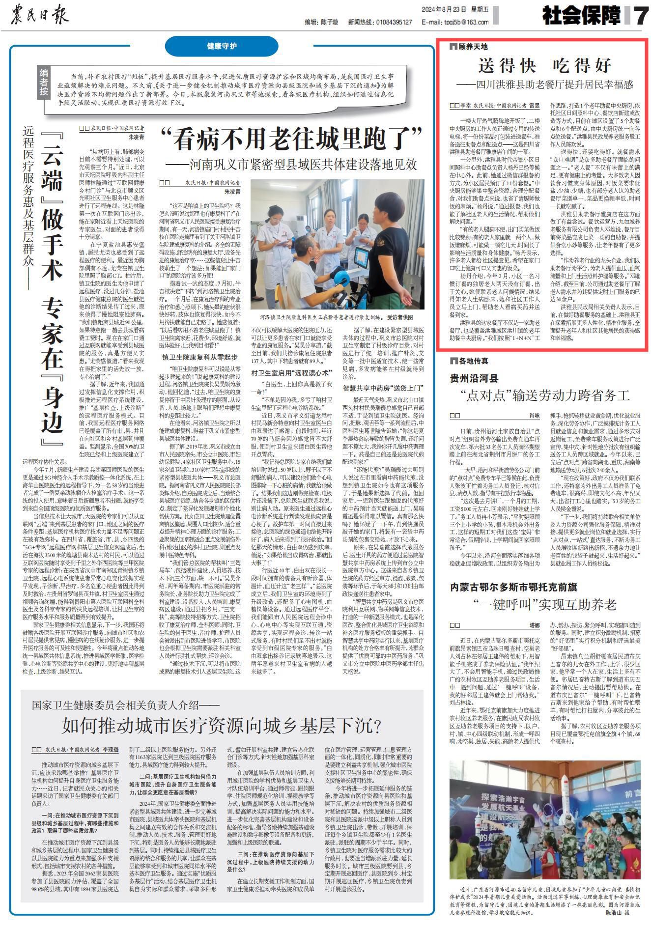 “作为养老行业的龙头企业,我们以助老餐厅为平台,为老人提供血压、血氧测量和上门生活照料护理等服务。”邓雄介绍,截至目前,公司通过助老餐厅了解老人需求并为其提供定时上门服务的已达30余户。