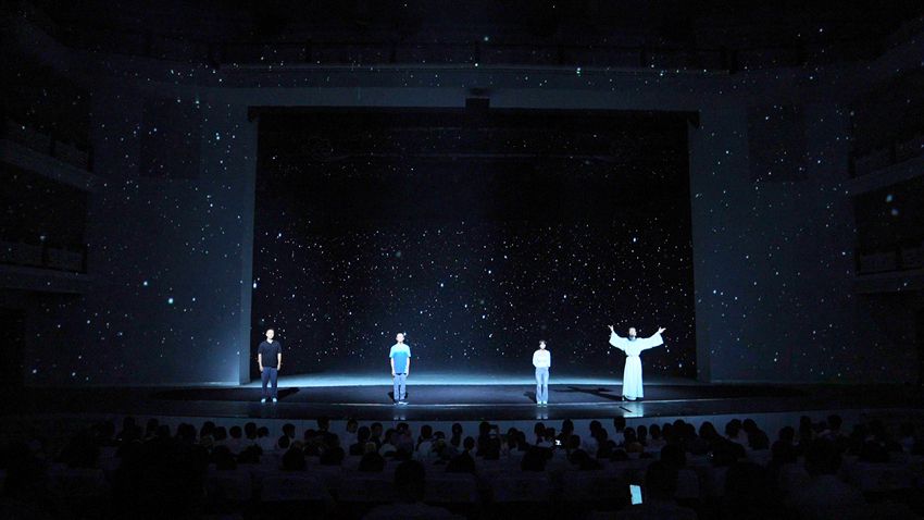 嘉年华之夜现场,开场秀中书画少年与李白“相遇”,跨时空对话,探讨流传后世的古诗,将观众带回李白的故事里。