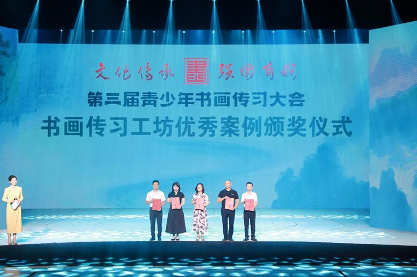 大会还现场为兴乐国画工作坊等23个书画传习工坊优秀案例一、二、三等奖,以及112个书画教学课例进行了公布和颁奖。