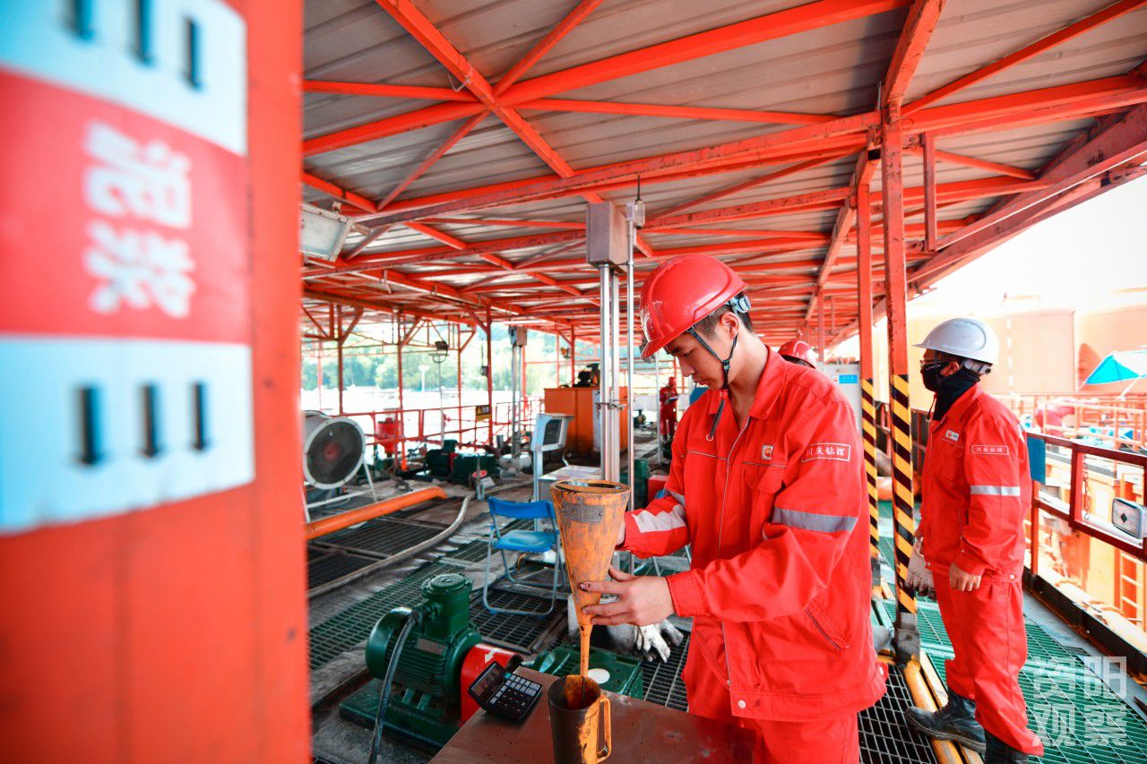 近日,在安岳县林凤镇桥埝村,47米高的勘探井架耸立。中国石油集团川庆钻探工程有限公司的80余名队员不惧“烤”验,三班倒24小时工作。技术人员张灵杰介绍,自4月开钻以来,钻机已掘进至5120米,预计8月28日达到6243米目的层。