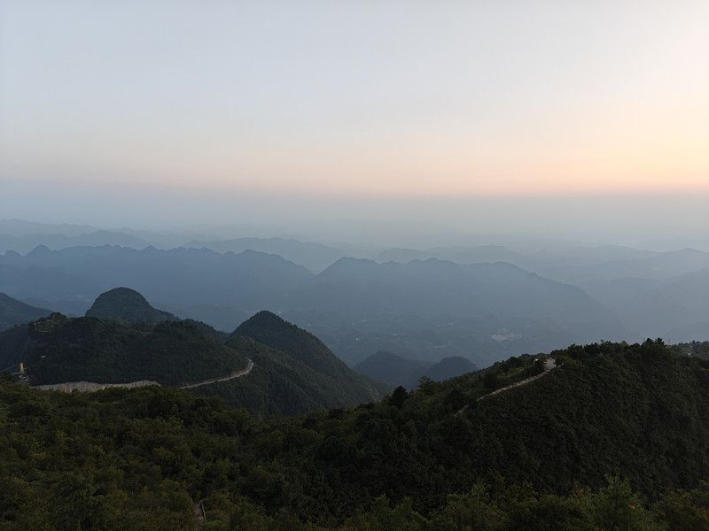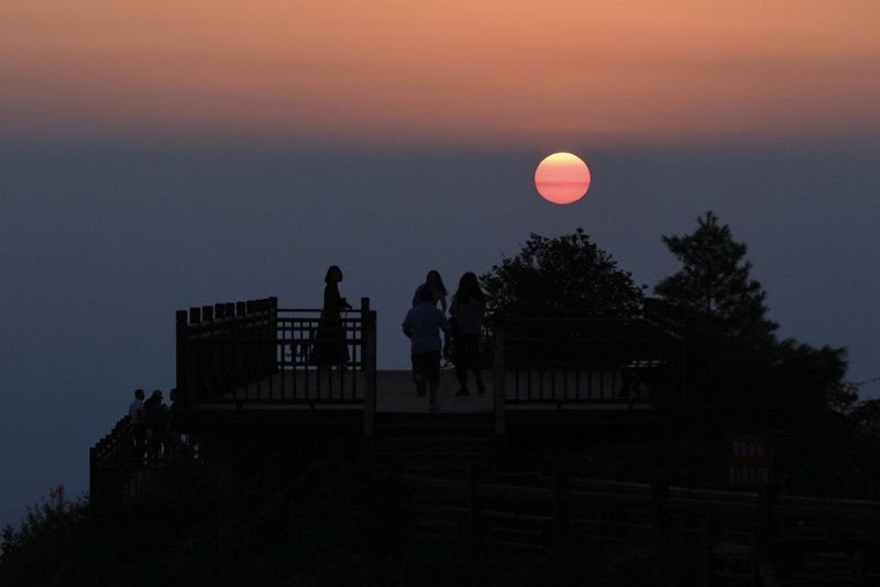 站在八台山的脚下,抬头望去,只见山峰直插云霄,绝壁深峡让人心生敬畏。植被葱茏,森林茂密,高山杜鹃花散布于深山幽谷之中,风光秀丽迷人。晨曦破晓或夕阳西下时,登临山顶,金色阳光跳跃在连绵的山峰间,红霞漫天、云海翻腾,仿佛调色盘洒落人间,五彩斑斓、美不胜收。
