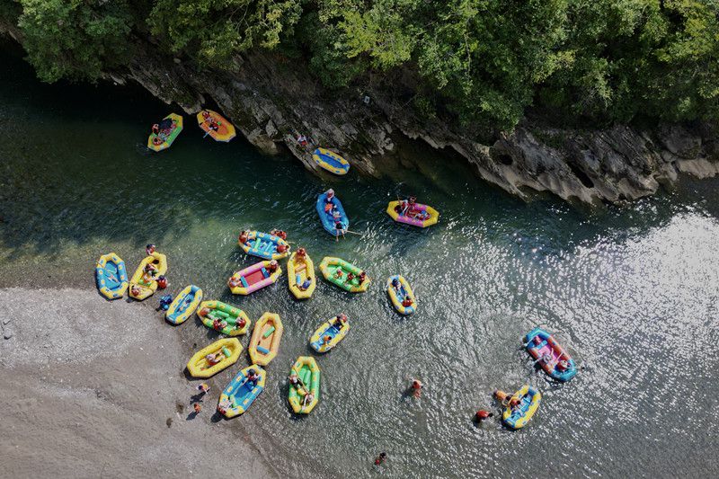离八台山不远的龙潭河是整个巴山峡谷最惊险的区域,这里的漂流被游客评为“大巴山第一漂”。在安全员的引导下,漂流客们乘坐橡皮船顺河而下,途经36个滩、36个潭,在高山峡谷、急流缓溪中尽览两岸奇山异峰、飞瀑流泉。