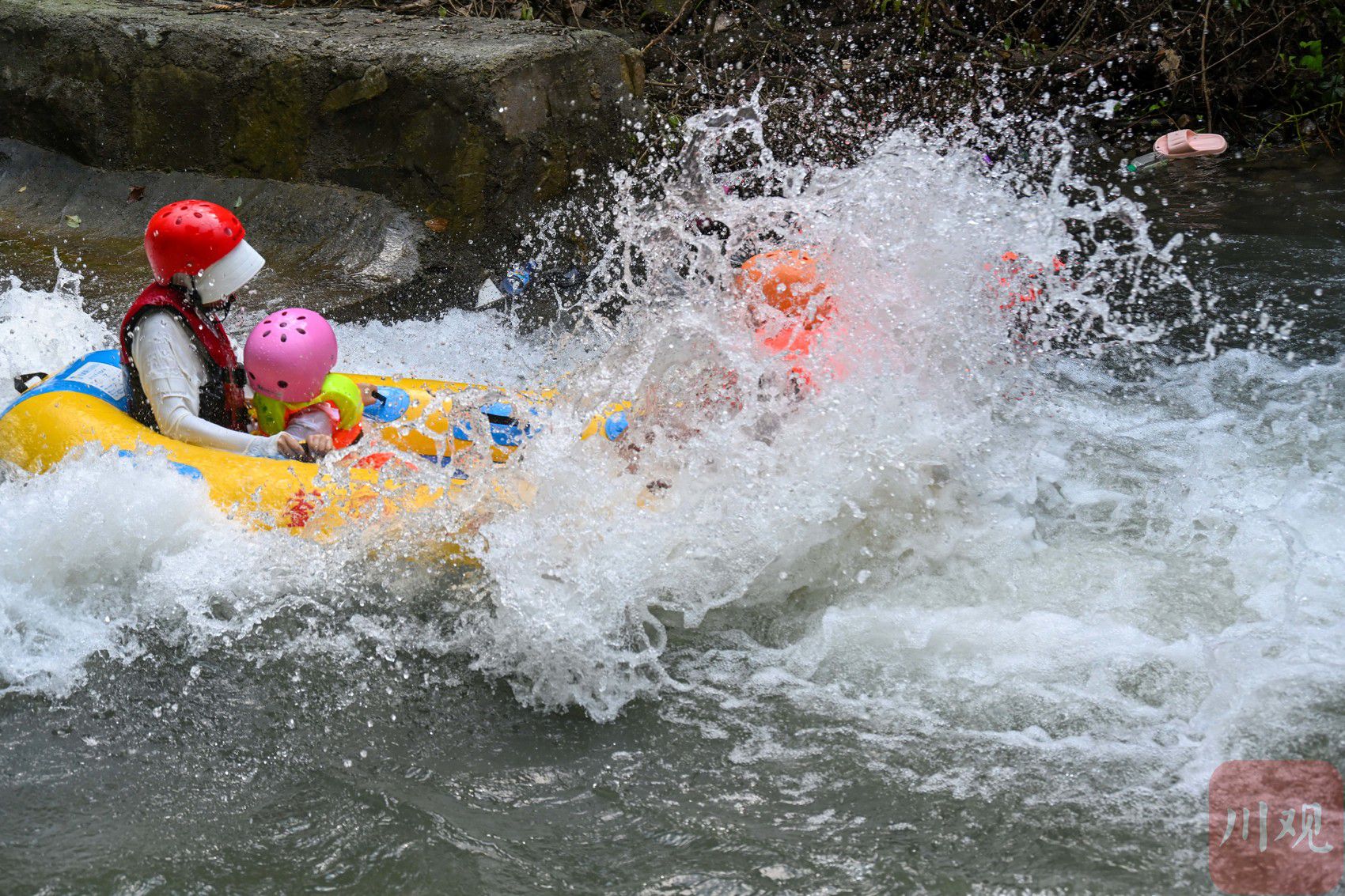 8月25日,游客在什邡市蓥华大溪谷体验漂流,乐享清凉时光。 顾云辉 摄