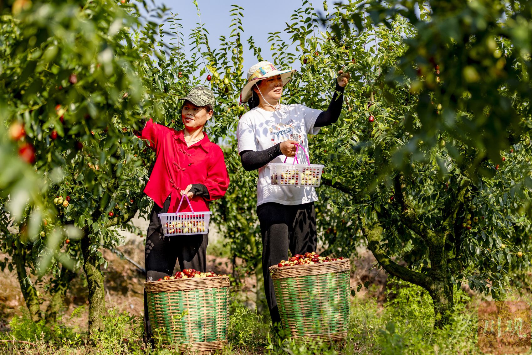 8月25日,德阳旌阳双东镇枣农顶着高温采摘鲜枣。 唐渝川 摄