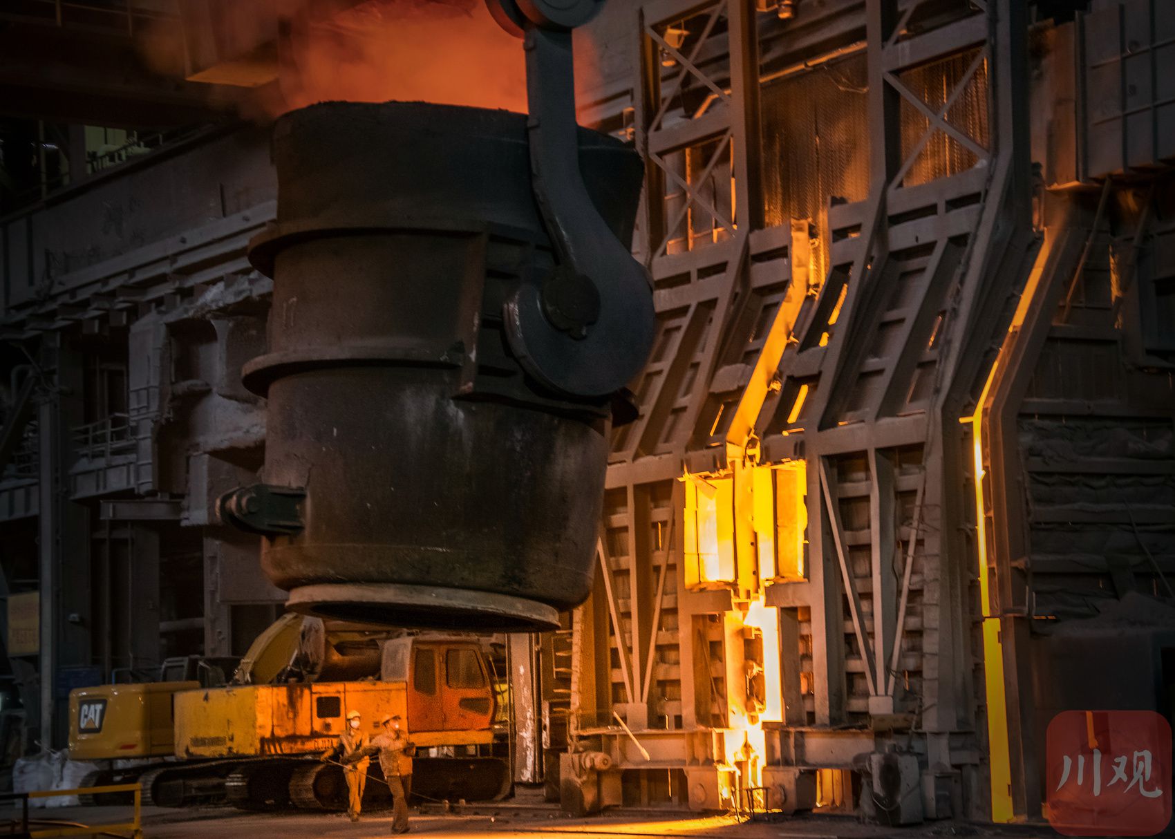 8月24日,达州钢铁集团炼钢车间,工人师傅高温炉前挥汗如雨的劳作。 向世文 摄