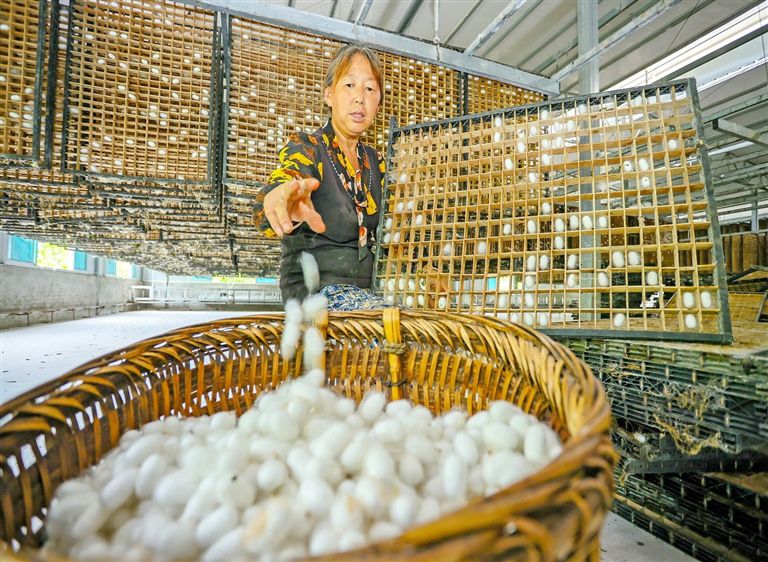 射洪市沱牌镇金舜村,蚕农忙着采摘蚕茧。首席记者刘昌松摄