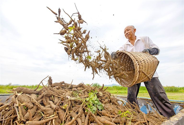 今年,遂宁2.5万亩白芷丰收。在市河东新区芝溪谷渔舟村,当地种植公司忙着采收。 全媒体记者 吴奉家 摄