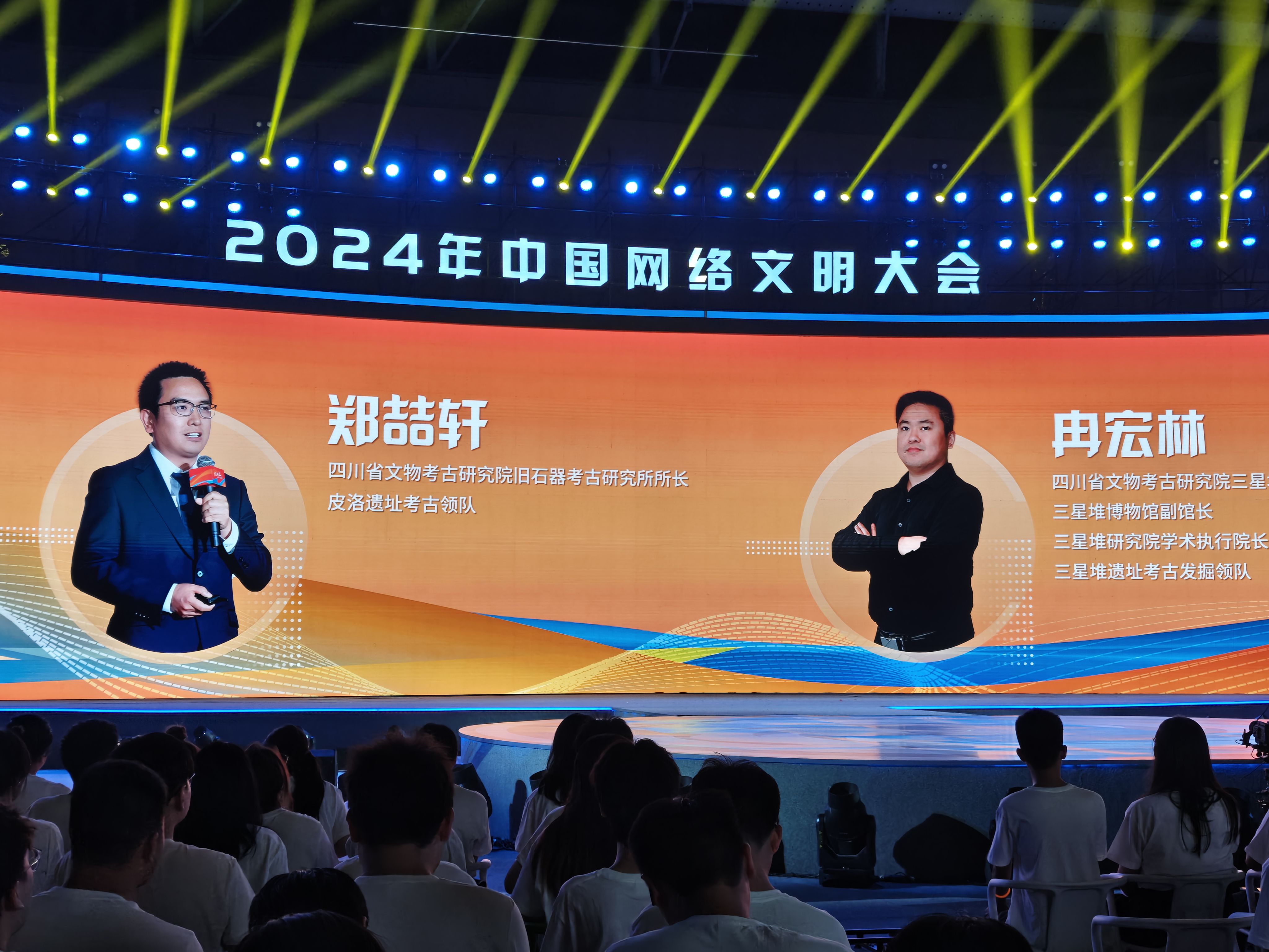 “未来之夜”闪耀科技繁星,电子科技大学校长胡俊用一代代科大学子驰骋信息天地的故事,勉励当代青年要将科技力量转化为网络空间向上向善的正能量;致力于百万年人类史、一万年文化史、五千多年文明史研究的四川考古人郑喆轩、冉宏林,则以田野考古的亲身经历结合大视觉沉浸式影像,重现20万年前人类征服青藏高原、3000多年前古蜀先民开拓创新的历史进程。