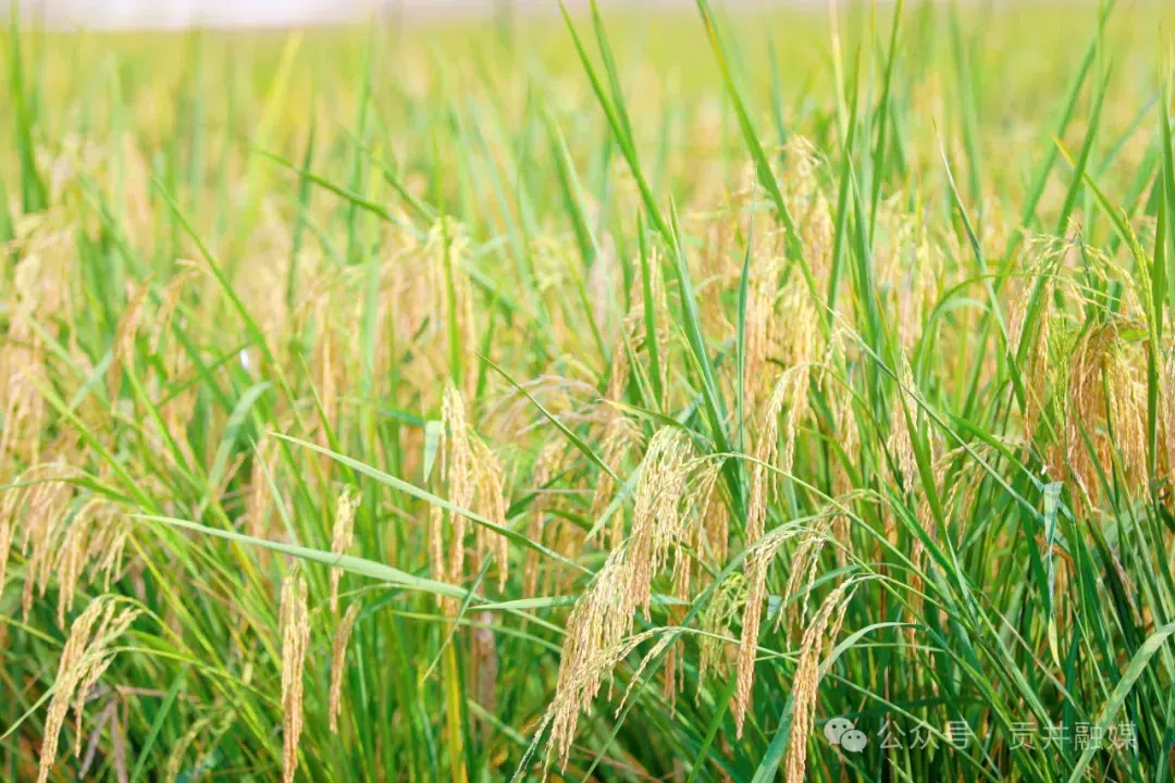 稻香浸润、金谷归仓,近日,自贡市贡井区的水稻进入了丰收季。在位于龙潭镇的一座家庭农场,一片植株高大的水稻田映入眼帘,稻谷的清香,弥漫着整个田野,长而饱满的稻穗随风摇曳,沉甸甸的稻穗压弯了稻枝头,一片丰收的景象。