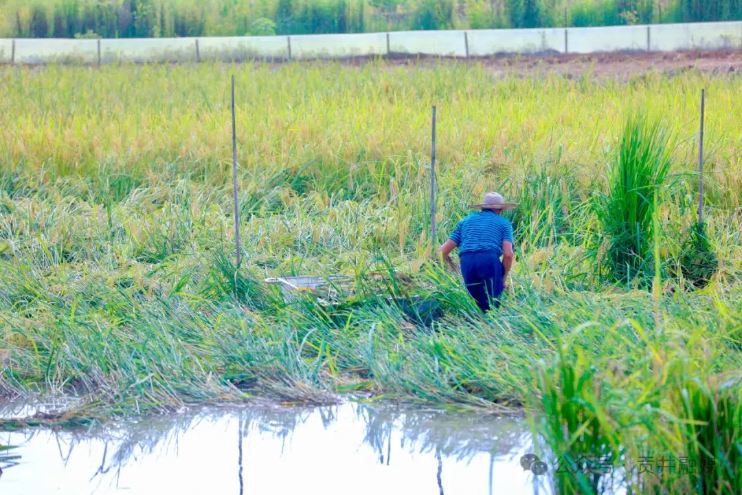 除了具有高产的特点外,“巨型稻”因根系较深,可增加稻田蓄水深度,非常适宜水产养殖,形成立体农业发展模式,能同步喂养蟹、虾、鱼等,做到“一田两用、一水双收”。
