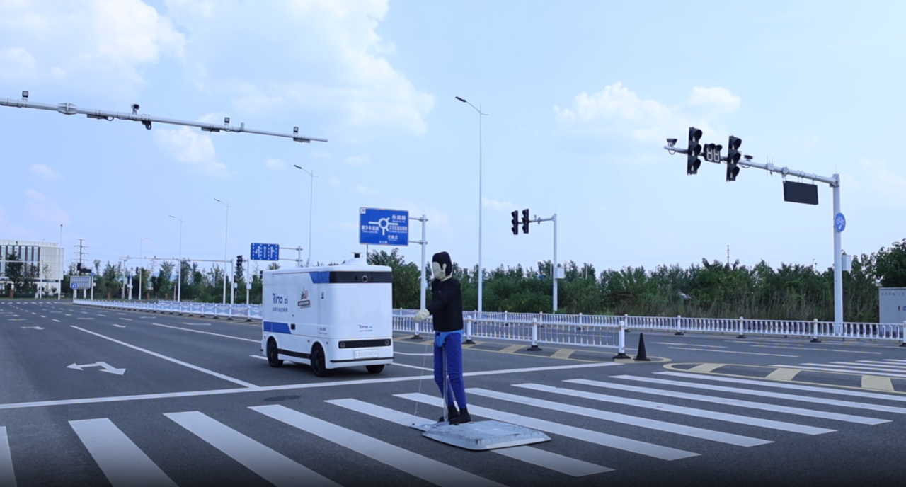 无人快递车正在进行“自动紧急避险”项目测试