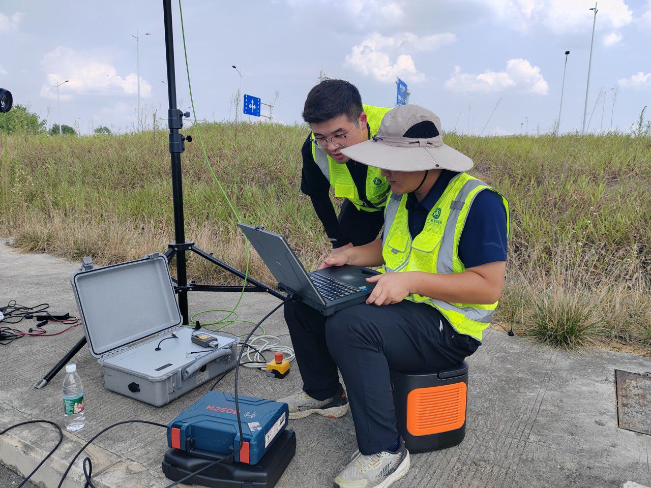 测试员正在进行测试前设备调试