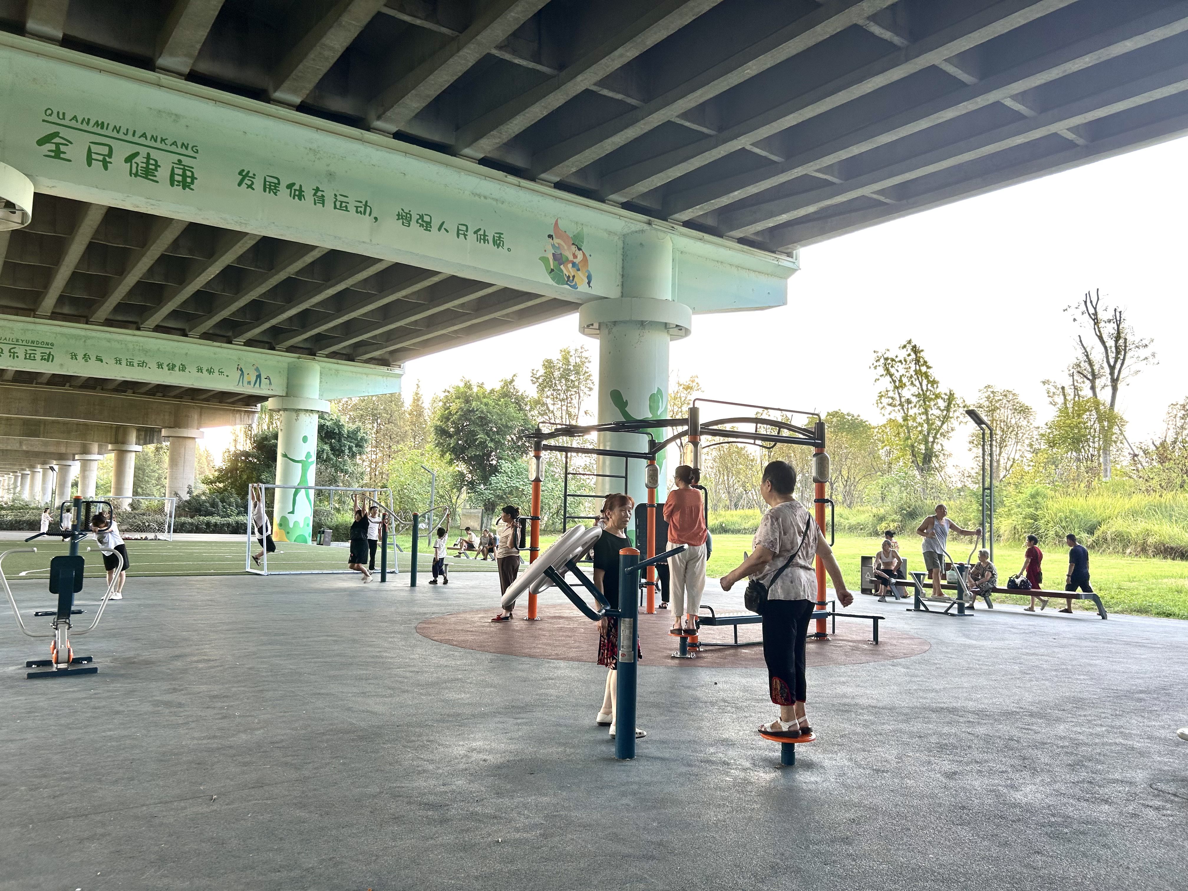 虽然近期遂宁持续高温,但位于船山区九莲洲生态湿地公园内的“口袋公园”内一大早就热闹非凡,市民们纷纷前来进行乒乓球、太极拳、羽毛球等晨练活动。这个“口袋公园”于去年正式建成投用,它巧妙地利用了九莲洲生态湿地公园桥下2000平方米的剩余空间,通过增加门球场、乒乓球台、幼儿足球场等体育设施,并以免费开放的形式为老城区特别是滨江北路、滨江中路沿线居民提供了运动休闲空间和亲子互动场地。