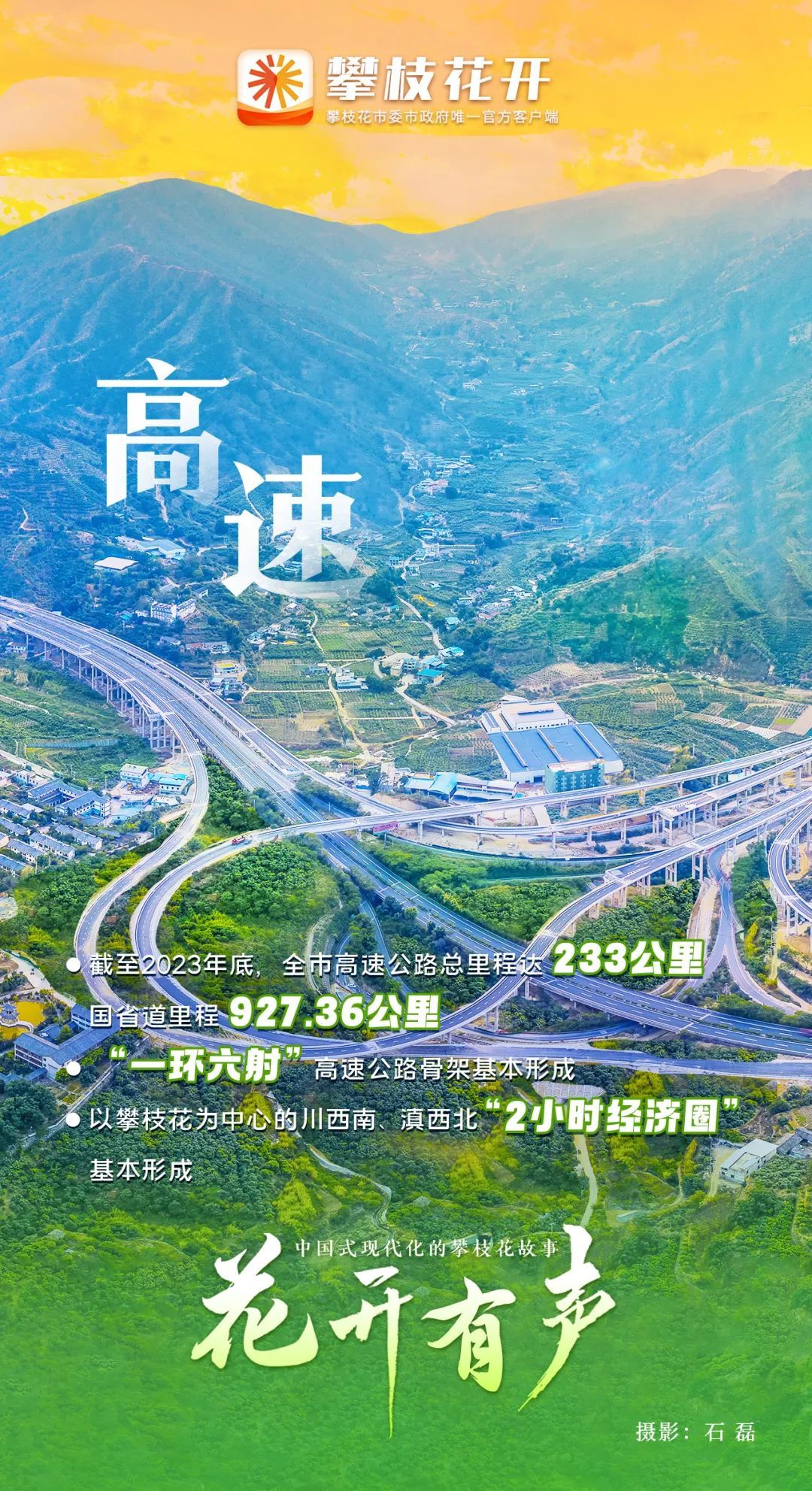当前,攀枝花已经伸出了“通江达海”的臂膀。怀抱之中,是与毗邻县(市)1小时、与毗邻市(州)2小时、与成渝贵昆3小时的交通圈。未来,攀枝花将演绎更多时空距离的“缩放术”。