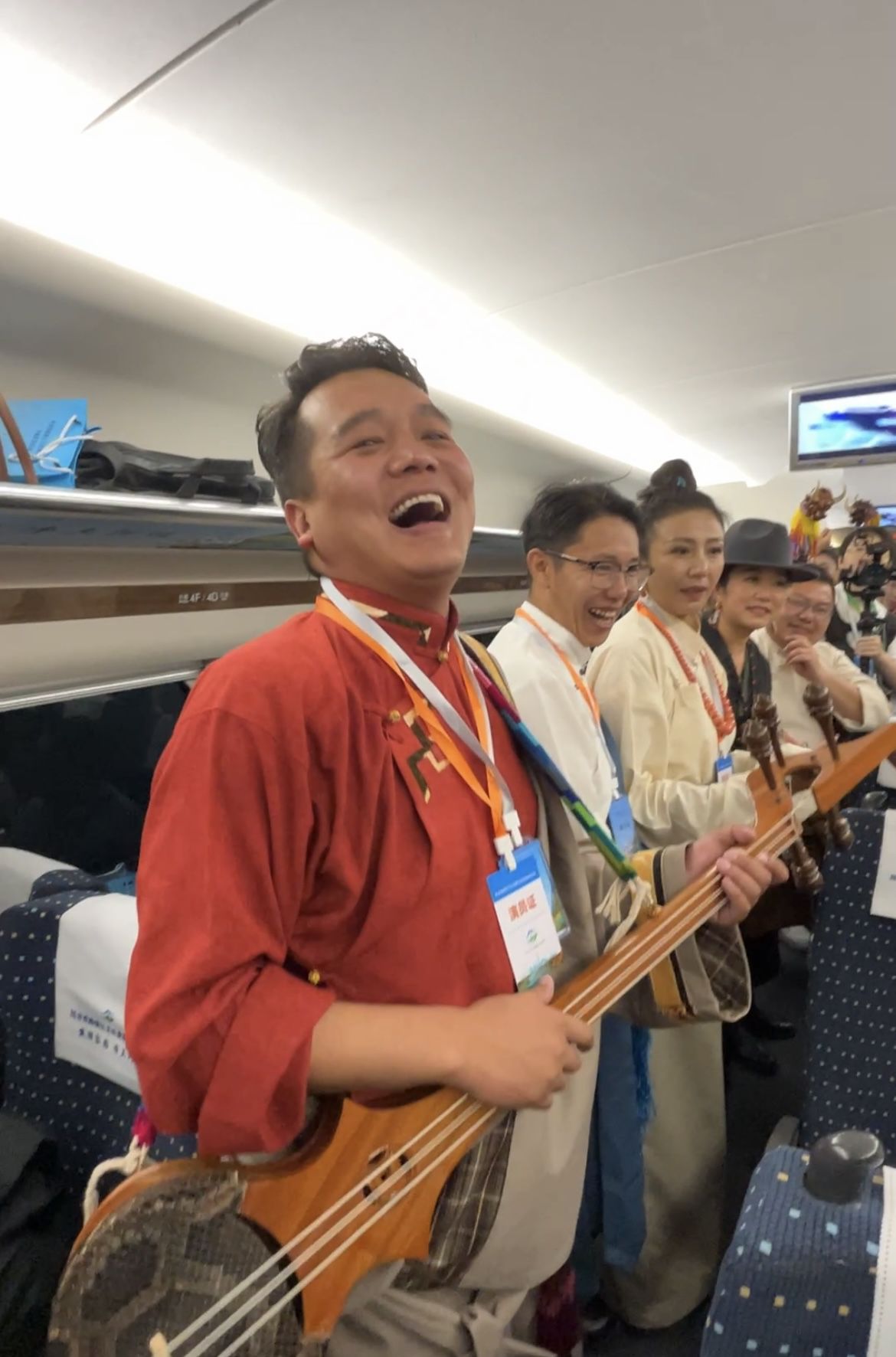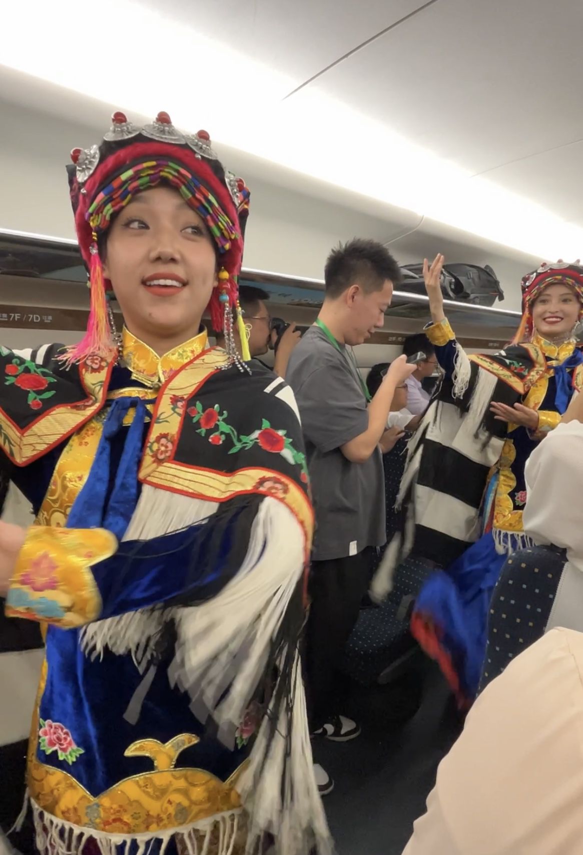 充满浓浓民族风情的演出,将车厢内的气氛引向高潮。一路欢笑一路歌,不得不说,这首发动车的氛围感拿捏了!