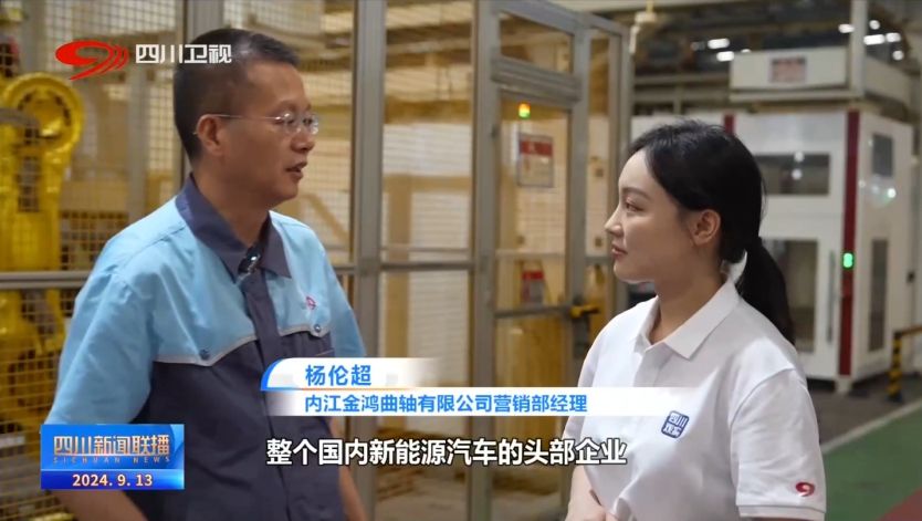 内江金鸿曲轴有限公司营销部经理 杨伦超:整个国内新能源汽车的头部企业,包括比亚迪、理想、赛力斯,这些我们都是主供,特别是在重庆的赛力斯,目前来说它的销量直线上升,现在一个月大概已经有4到5万的销量,都是我们在主配。