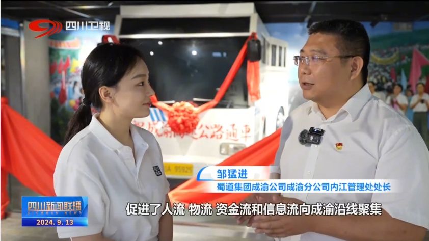 蜀道集团成渝公司成渝分公司内江管理处处长 邹猛进:时间和空间的这种转变,促进了人流、物流、资金流和信息流向成渝沿线聚集,形成了成渝经济走廊,城市发展和老百姓的生活水平发生了极大的转变,社会效益和经济效益也非常高,起到了一个很好的示范作用。