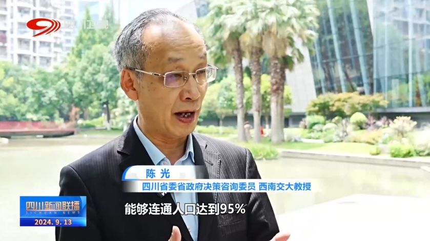 四川省委省政府决策咨询委员 、西南交大教授 陈光:全国能够通达(万公里的省份),连通人口达到95%,我们能够连通人口98%,就这一点,我们取得的交通成绩非常值得肯定,首先意味着我们四川的老百姓出行的快捷方便高效,对我们产业发展,对我们城市建设,对我们四川正在推进的高质量发展历程的非常重要的一个助推。