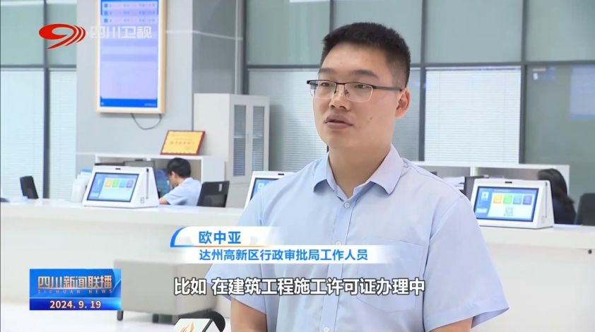 达州高新区行政审批局工作人员 欧中亚:比如,在建筑工程施工许可证办理中,我们将质量监督备案、安全监督备案等事项与施工许可并联审批,一次办结。整个过程由法定的20个工作日,缩短为一个工作日。