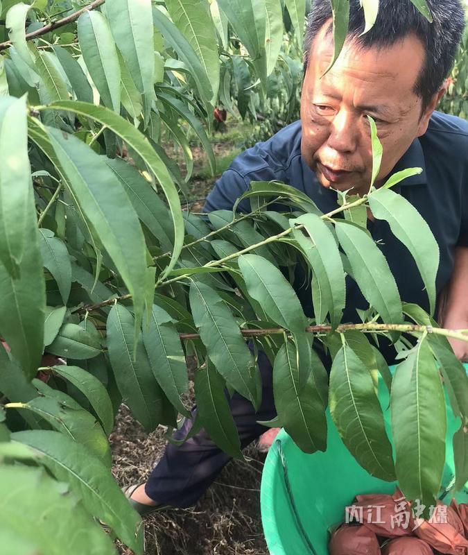 那年秋天,当地蜜桃成熟的季节,夏开文踏上了山东考察学习之旅。“我觉得很不错,可以回去试试。”电话中,夏开文把想要在家种桃树的想法告诉了儿子夏秋波,并得到了支持。回程,他带回了一亩地的种苗,开始试种。第二年桃树挂果了,个头大、口感好。试种成功,夏开文开始着手扩大种植规模。2018年,他们的种植规模扩大至30余亩。