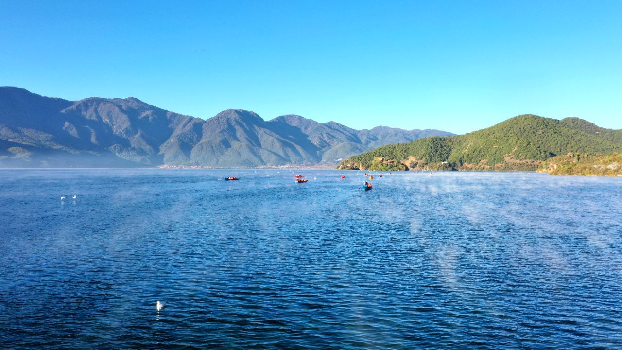 一叶落,平分秋色。万物收,岁月无恙。当秋分靠近,属于泸沽湖的秋日浪漫在一片落叶轻轻落进湖水,荡起圈圈波澜的时候就被具象化了。这个被山水环绕的高原湖泊,原本就被自然偏爱,拥有别处鲜见的风光,秋日更甚,起伏的山峦随着蔚蓝的湖水延伸,天高云淡,水天一色。