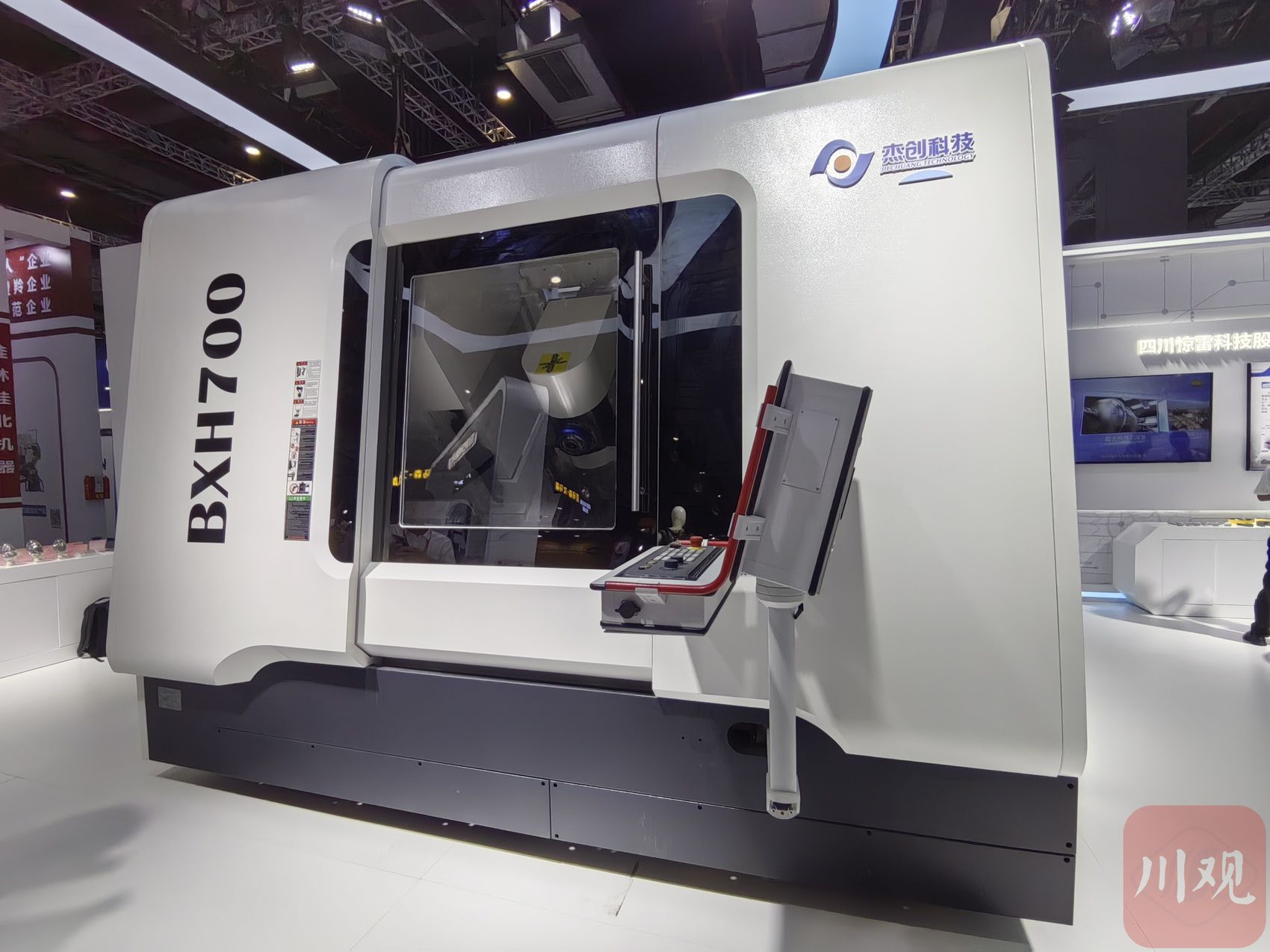 其中,一台2米多高、“四川造”的“大盒子”,吸引众多专业观众驻足。它的名字叫“BXH700型五轴叶片加工中心”。五轴加工中心是一种高精度的机床,可以在三维空间内进行五轴联动的加工,制造各种复杂曲面。
