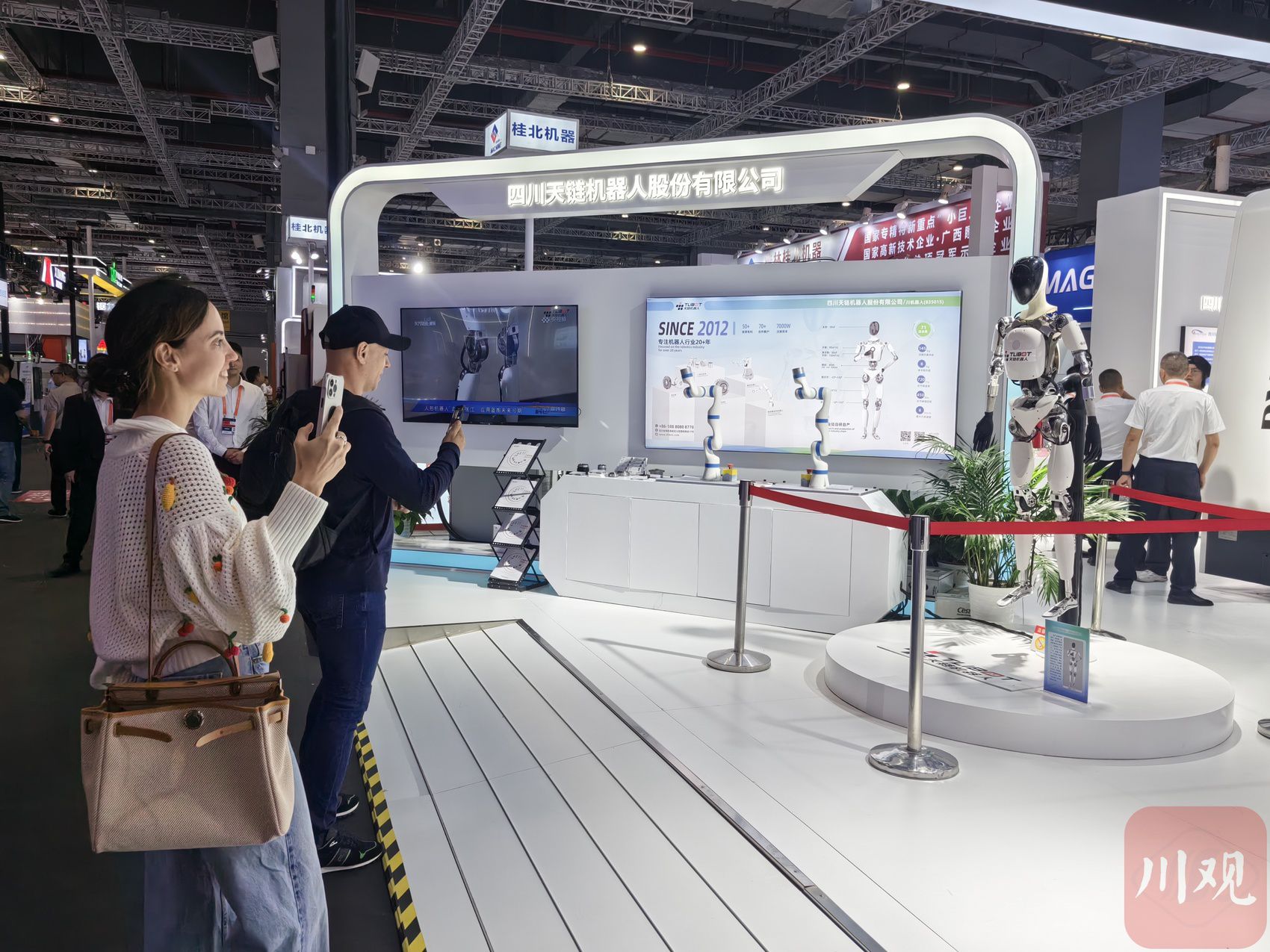 劈叉、跳跃、耸肩……在工博会四川馆入口处,“舞动”的人形机器人,成为人气明星,吸引众多国内外观众拍照记录。