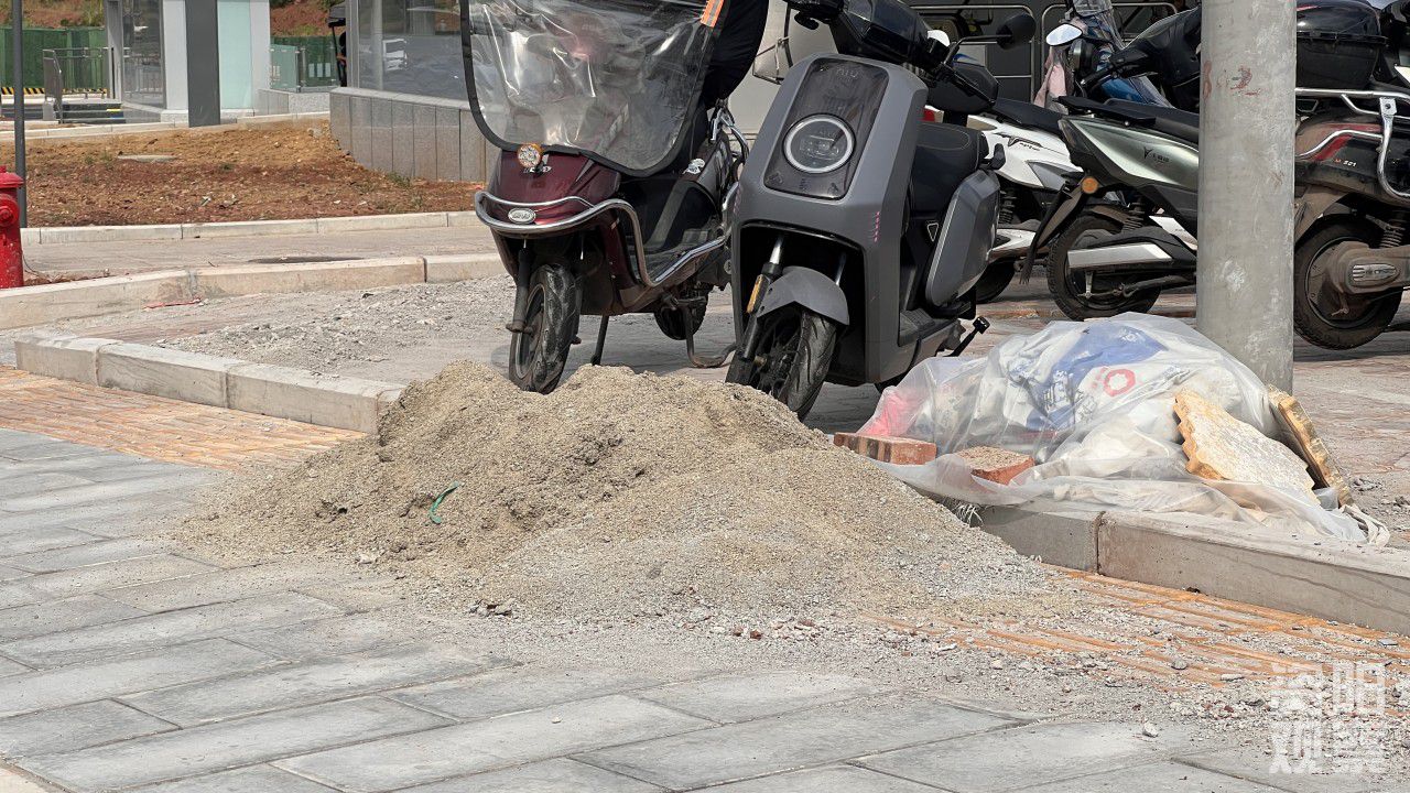 记者随后联系到雁江区市政管理所负责人肖洁,他告诉记者,宝台站A出口处规划了非机动车停放点,修建好后,有机动车辆在此违规停放,导致部分地砖被压坏。待地砖到货后就会重新铺设,并在入口处增设阻车桩,工程完成后就会把沙堆清理掉。