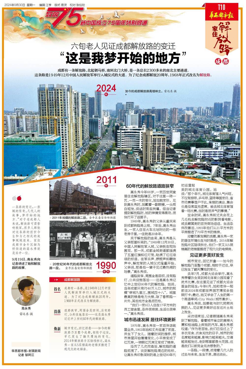 国庆节来临之际,高永秀向记者讲述了她和解放路的故事。