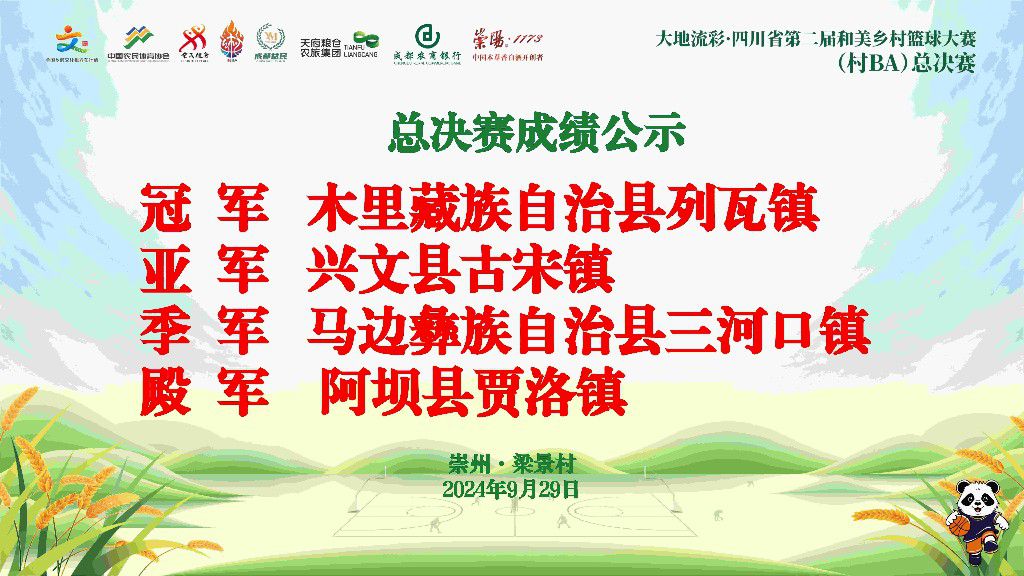 9月29日,四川省第二届和美乡村篮球大赛(村BA)总决赛在崇州市崇庆中学实验学校篮球场闭幕。经过6个比赛日的激烈角逐,最终,木里藏族自治县列瓦镇代表队获得本次赛事正赛比赛冠军,福建晋江代表队获得本次比赛冠军。