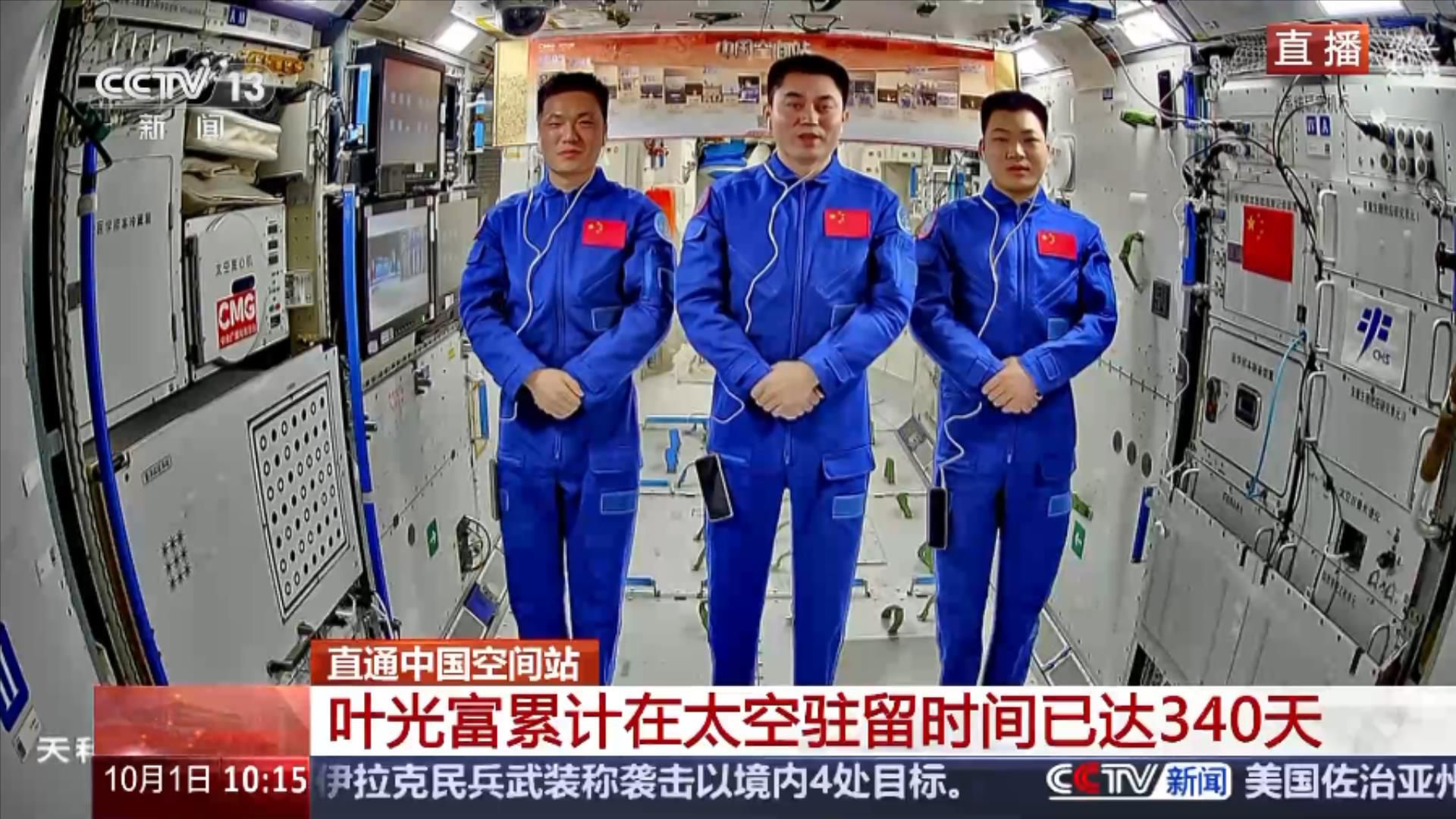 截至今天(10月1日),川籍航天员叶光富累计在轨时间已经达到340天。目前,中国航天员累计在轨飞行时长200天以上的有6人。第一次在空间站迎接国庆,航天员叶光富分享了他的感受。
