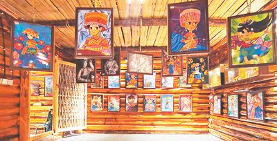 传习中心内举办“阿木诗依”傈僳族文化儿童绘画展。