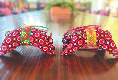 工作室内摆放的各种非遗文创产品。本报记者 吴雪聪摄