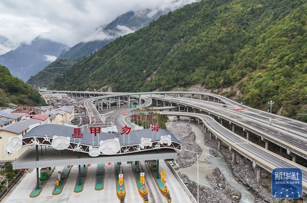 ↑这是10月11日拍摄的正在建设中的九寨沟—绵阳高速公路甲勿海收费站(无人机照片)。九绵高速开通后,从成都至九寨沟县的时间将从原来的8小时缩短至4小时。