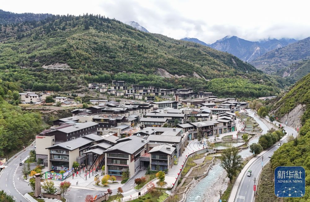 ↑这是10月10日拍摄的九寨沟县中国绿发华美胜地度假区(无人机照片)。