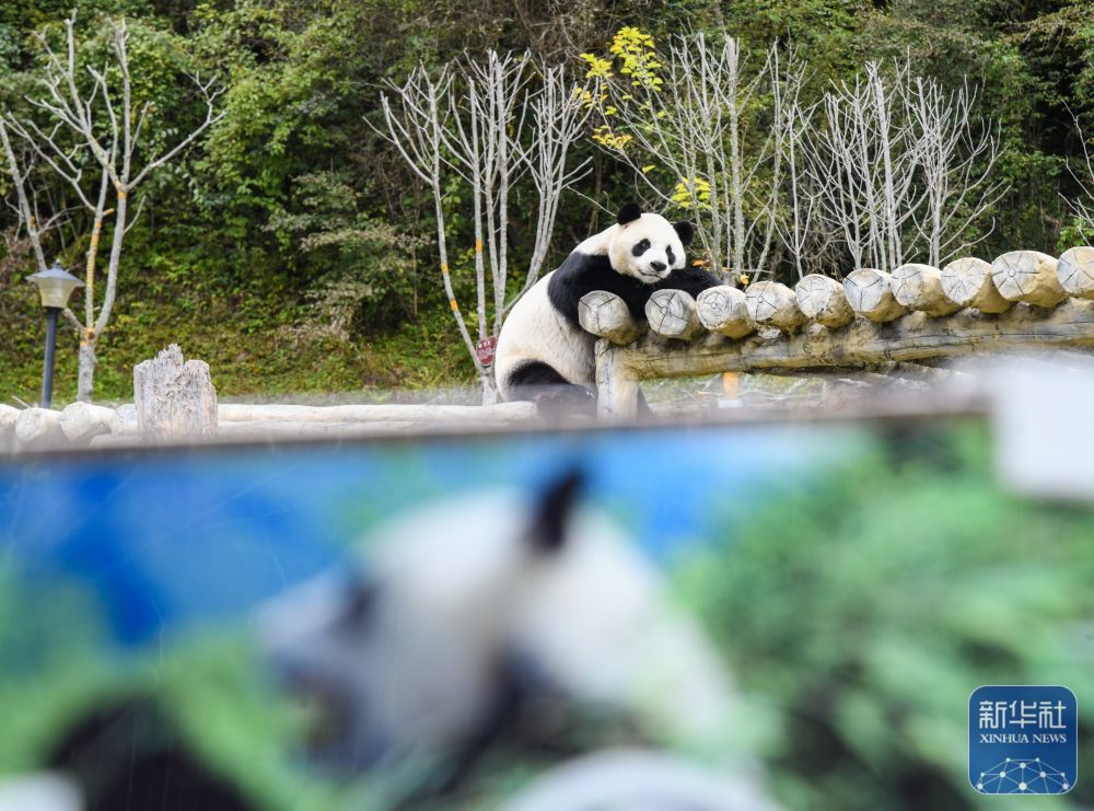 ↑这是10月10日在九寨沟县景区甲勿海熊猫园拍摄的大熊猫“新新”。