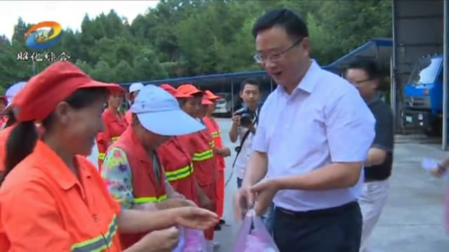 来到区环卫所,龙兆学向工人们致以亲切的问候。他说,七月以来,天气炎热,大家始终在室外工作,不怕苦、不畏难。区委、区政府始终挂念着大家,关心着大家,今天特为大家送上牛奶、洗衣液、防暑降温药品等慰问物品。近年来,昭化城区以清洁著称,这些都凝聚着大家的辛劳。在国卫复审的关键时期,要求更高,工作更辛苦,希望大家继续发扬不怕苦、不畏难的精神,全力以赴做好本职工作。同时,要保重好身体,确保自身健康。部门要合理安排好环卫工人和城管队员作息时间,细致到位地做好防暑降温工作。