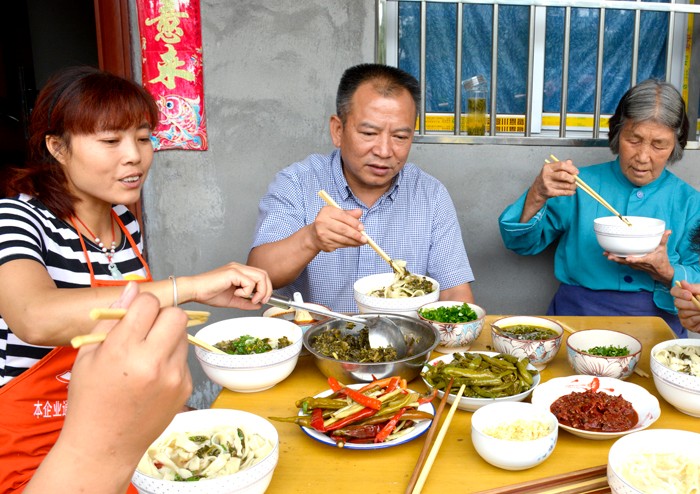 中午时分,陈正永分别来到建卡贫困户刘国勇、余素华的家,两家人几乎是一墙之隔,关系十分融洽。来到余素华老人家里,正到了午饭时间,在征求了老人的意见后,陈正永同她坐在一起吃午饭。一边吃饭,一边聊家常、谈发展、话未来,虽然只是一碗简单的面条,但大家却聊的很开心,现场不时还发出阵阵笑声。